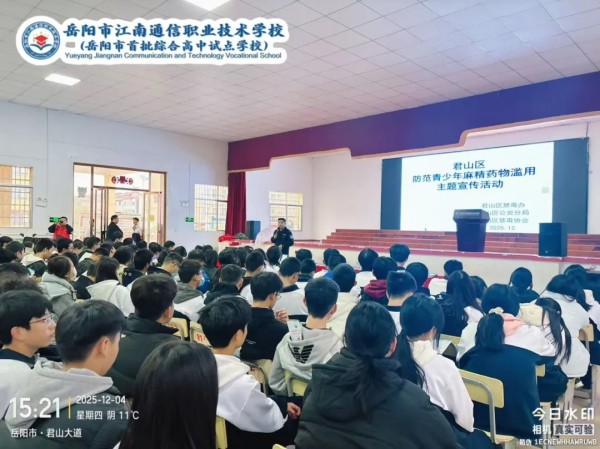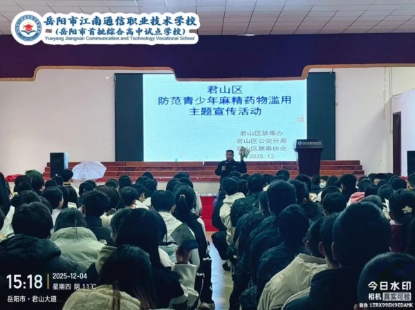為切實(shí)加強(qiáng)青少年毒品預(yù)防教育,提升學(xué)生識(shí)毒、防毒、拒毒意識(shí)與能力,12月4日,君山區(qū)禁毒辦攜手君山區(qū)公安分局禁毒大隊(duì)、君山區(qū)禁毒協(xié)會(huì),共同走岳陽(yáng)市江南學(xué)校開(kāi)展主題鮮明、形式多樣的禁毒宣傳活動(dòng),為全校師生筑起一道堅(jiān)實(shí)的“無(wú)毒”青春防線。